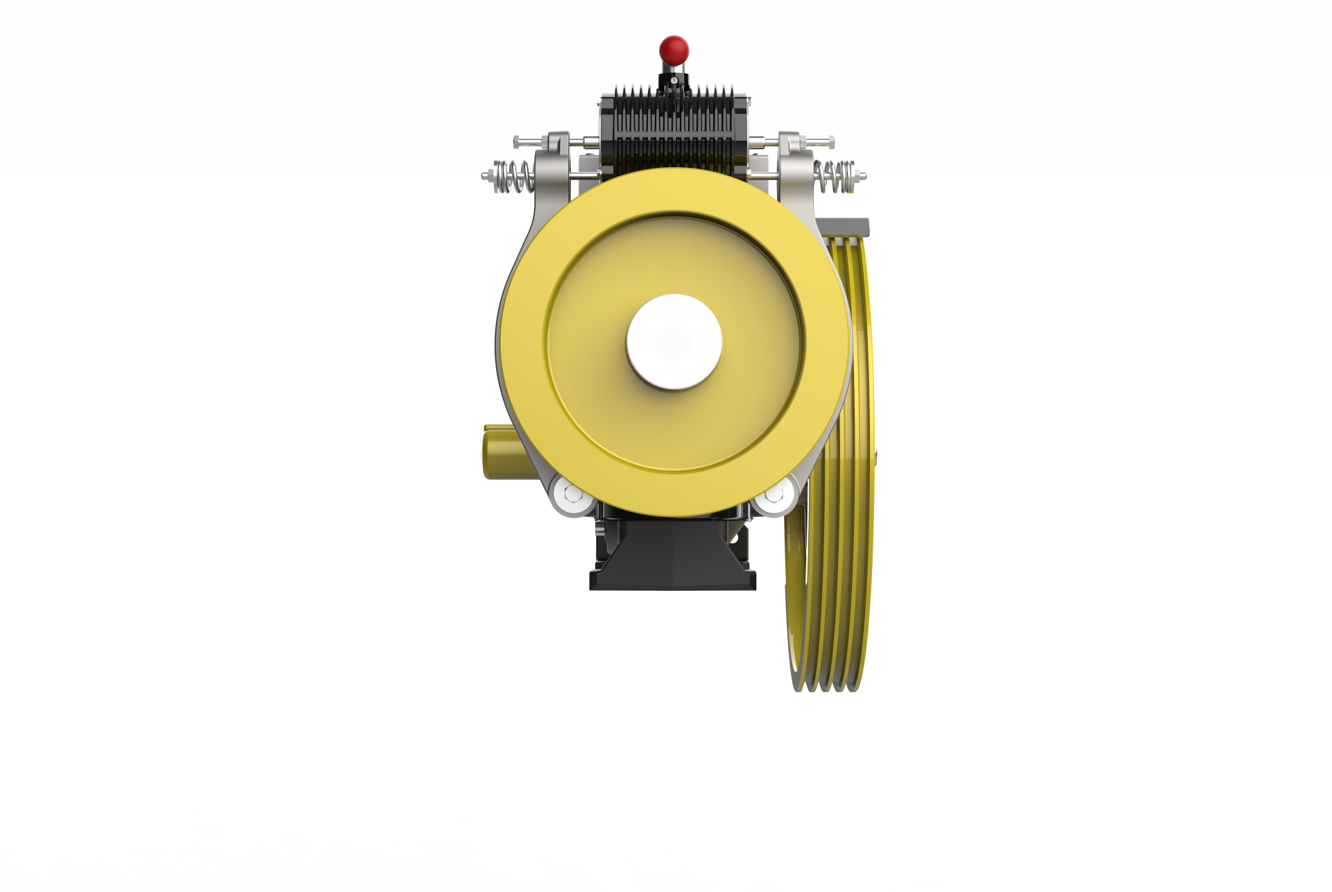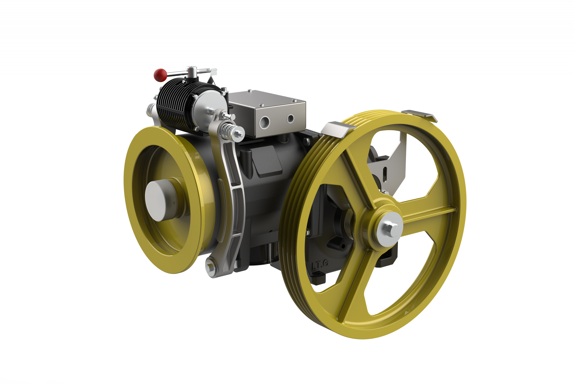 El eje bicónico permite instalar el SSB (freno de eje lento) en el lado opuesto de la polea de tracción.